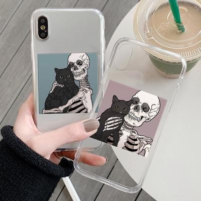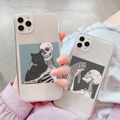 титульная страница > Электронная продукция > Череп Симпатичный кот Прозрачный чехол для телефона для iPhone 13 12 11 XS Samsung Galaxy A52s A70 A