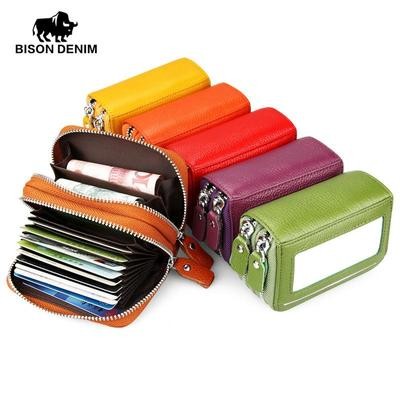 титульная страница > Сумки и чемоданы > Мода Женщины Подлинная кожа Держатель кредитной карты Кошелек Большая емкость Двойная молния Женский