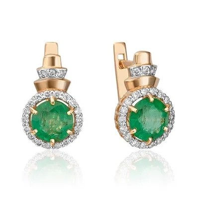 титульная страница > Ювелирные изделия > PLATINA Серьги с английским замком из красного золота 585 пробы c изумрудом и бриллиантами